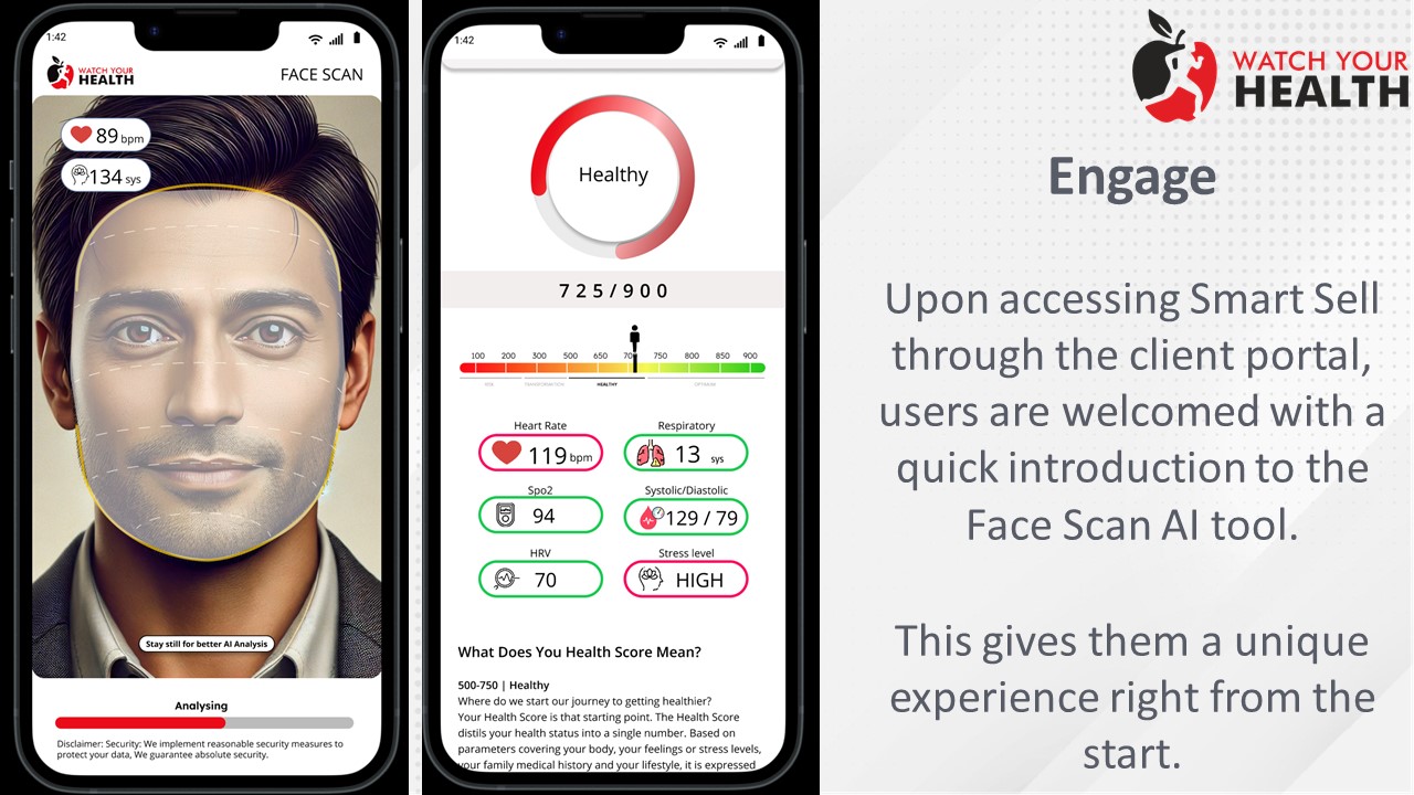 Employee 360 (Face Sense): A contactless face scan that empowers employees to understand their health while giving you anonymized insights at scale.